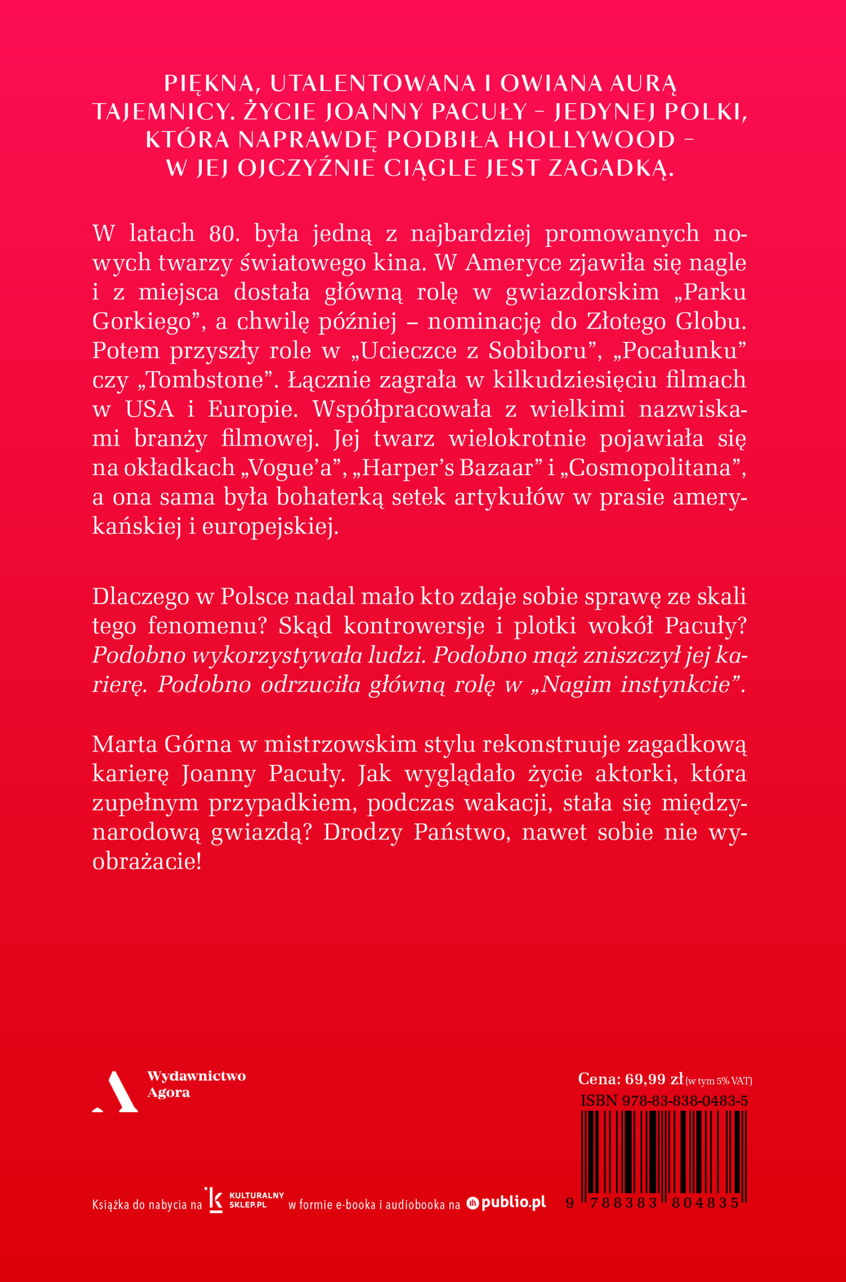 Marta Górna w mistrzowskim stylu rekonstruuje zagadkową karierę Joanny Pacuły. Jak wyglądało życie aktorki, która zupełnym przypadkiem, podczas wakacji, stała się międzynarodową gwiazdą? Drodzy Państwo, nawet sobie nie wyobrażacie!