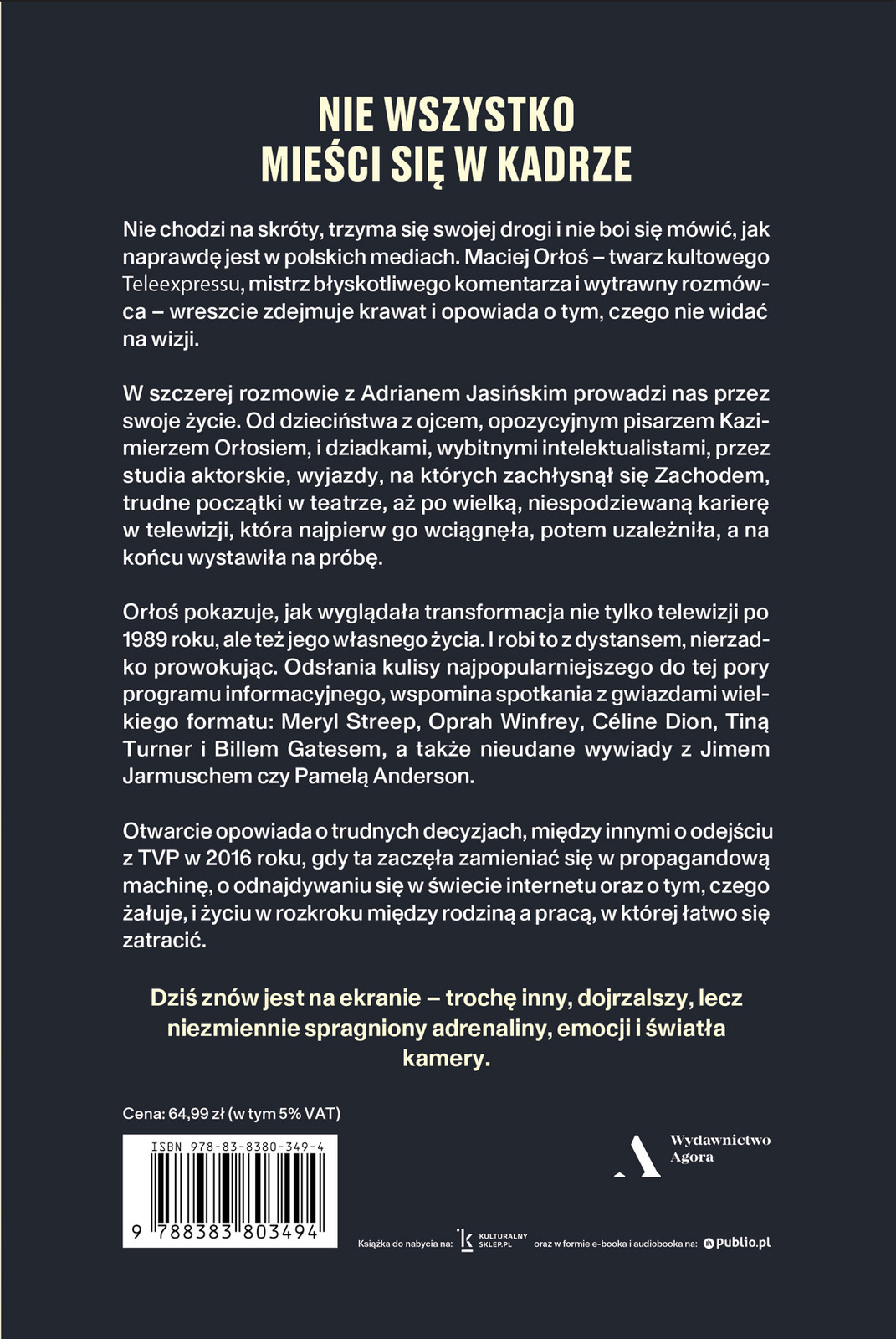 Nie chodzi na skróty, trzyma się swojej drogi i nie boi się mówić, jak naprawdę jest w polskich mediach. Maciej Orłoś – twarz kultowego Teleexpressu, mistrz błyskotliwego komentarza i wytrawny rozmówca – wreszcie zdejmuje krawat i opowiada o tym, czego nie widać na wizji.